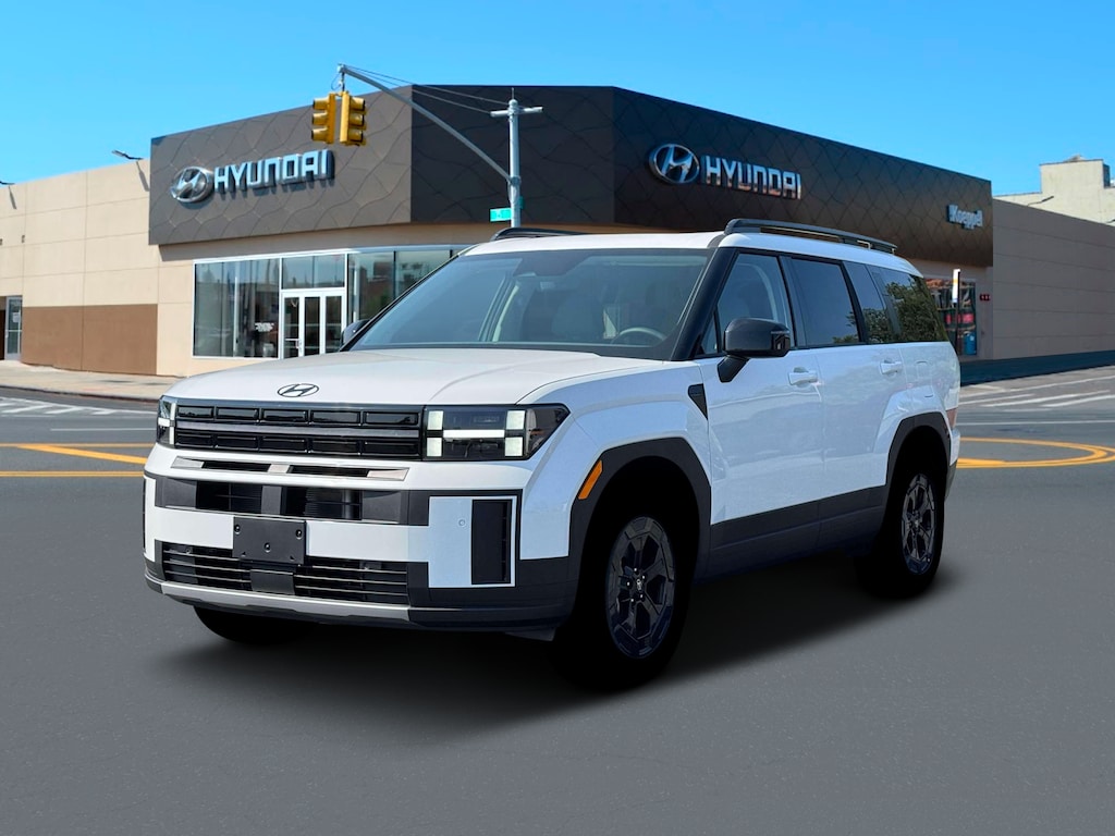 Serenity White 2026 Hyundai Santa Fe XRT AWD 8-Speed Automatic with SHIFTRONIC 2.5L I4 AWD, Black Premium Synthetic.